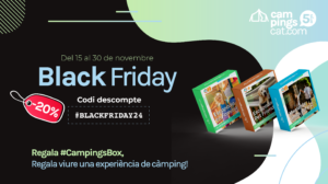 ¡Este Black Friday, regala aventuras con un 20% de descuento en CampingsBox! Si quieres sorprender a los tuyos con un regalo diferente, práctico y lleno de experiencias, aprovecha esta oferta única. Los CampingsBox son cajas regalo que permiten disfrutar de estancias en los mejores campings de Cataluña. Es el detalle perfecto para amantes de la naturaleza, escapadas en familia o aquellos que buscan una desconexión total.